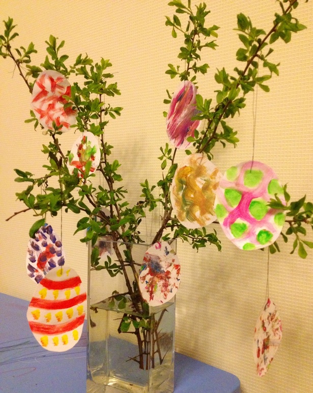 Ну и конечно, красили яйца, сегодня бумажные, для украшения пасхального дерева.