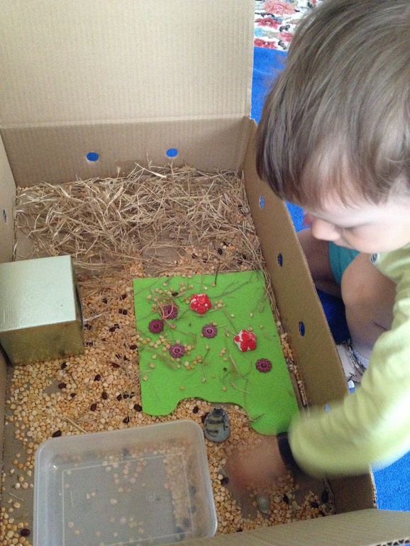 Миша помогал делать детали, а я все собрала. Ну и хит этого дня - зайчишкин огород!