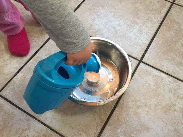 К сожалению, я совсем забыла, что планировала провести этот опыт на даче, где можно было бы сделать настоящий костер из бумаги. Так пришлось ограничится свечкой. Заодно сделали дыхательную гимнастику: задували спички. Настя сразу с осторожностью отнеслась к огню и поливала наш "пожар" из "шланга" очень аккуратно. Проделали много раз, "опыт" вызывал полный восторг. Обязательно завтра на даче повторим.