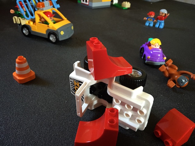 И на место аварии пришлось выехать нашим пожарным. За рулем одной из машины была обезьянка и, конечно, столкновения было не избежать! Красные элементы - это огонь.
