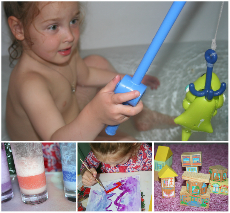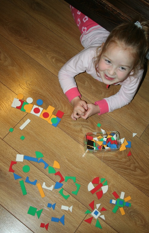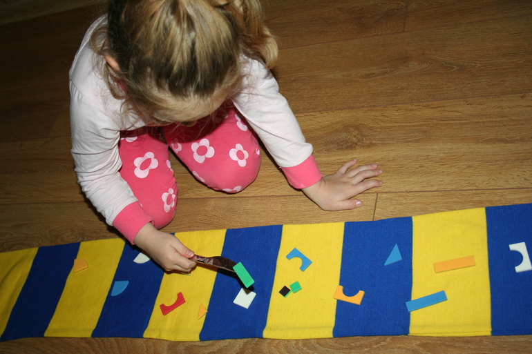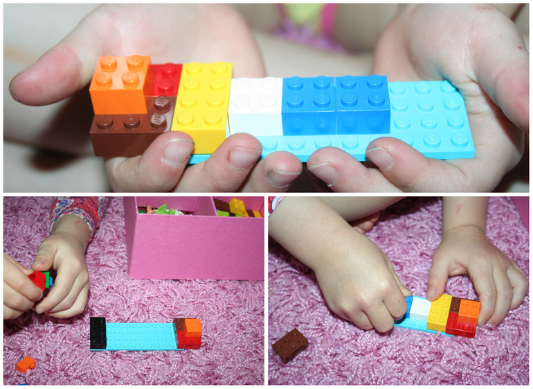 Рыбалка понравилась, поэтому поиграли в еще одну ее версию, но уже на суше. Камилка очень любит задания на логику, поэтому играли довольно долго, меняясь местами...