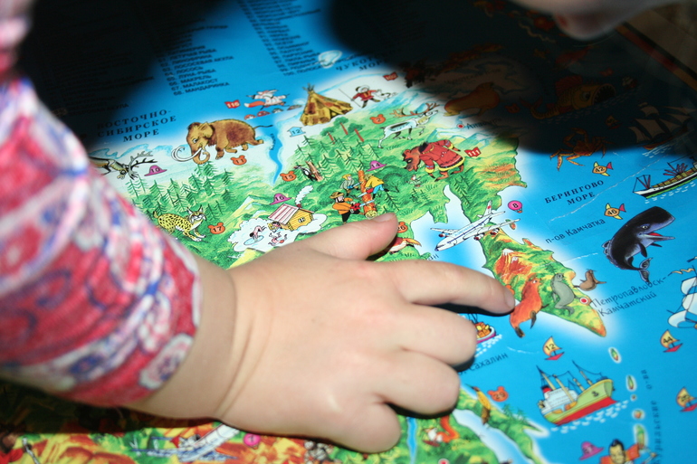 Однако, не о них пошла речь первыми, а о расположении Камчатки. Рассмотрели ее на карте, Камилла сама нашла этот полуостров, хотя и не без труда :-)