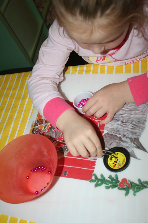 Но, а поскольку рыбалка на Камчатке очень часто сопровождается добычей икры, то и немножко поиграли на эту тему - сортируя бусинки по цвету и размеру с помощью пинцета! До сих пор помню вкус камчатской икры, которую нам привозила мама сестры в громадных банках: красную и черную. Красную я никогда не любила, а вот бутерброды с маслом и черной обожала. Это невероятная вкуснота, вспоминаю и слюнки текут :-) Хорошее у меня все-таки было детство :-) А вот Камилка еще ни разу икру не пробовала.