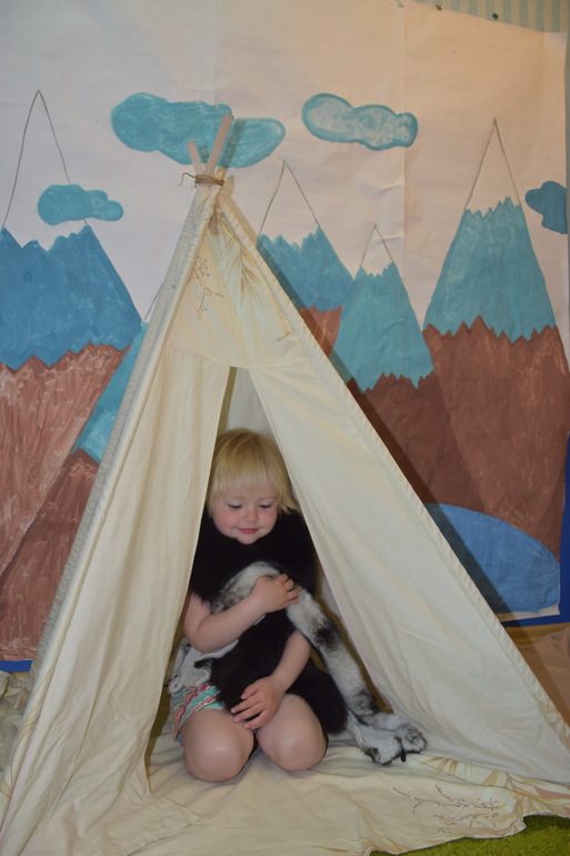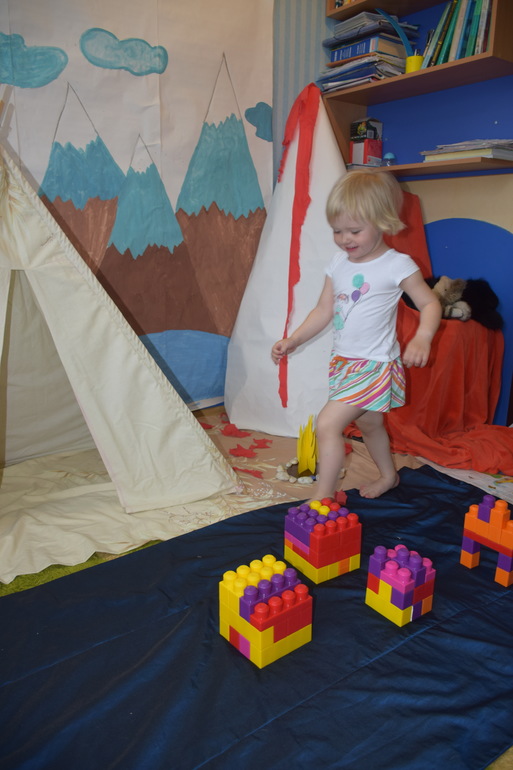 Напишу кратко,ибо я не мастер слова.Накануне вечером я активно боролась со сном.Результатом ночных бдений стал фон для наших игр. Шалашик был сшит пару месяцев назад.Осталось только собрать воедино и играть в своё удовольствие) На Камчатку летели на самолёте(физкульминутка)