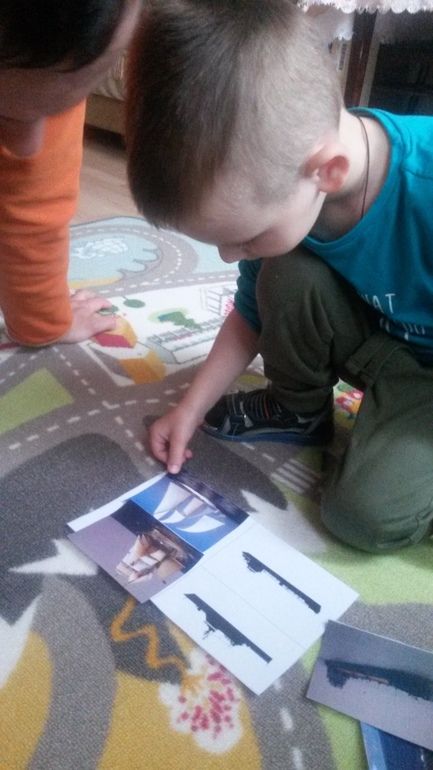 Картинки с разновидностями кораблей прикрепили на шкаф и стали строить из конструктора. У Родиона получилась баржа, пароход, ледокол, катер, подводная лодка и просто парусники.