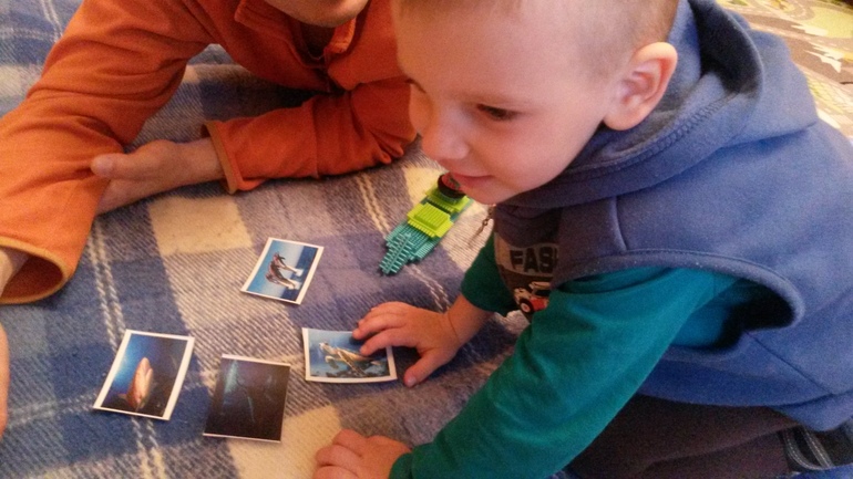 И вот на острове нас ждут загадки, я раскладываю картинки перед Родионом, ему нравится рассматривать, легко всех угадал.
