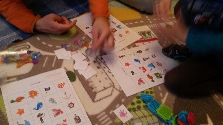 Черепаха принесла нам поля для игры в бинго, играли все вместе и нашли бархатную коробку с кладом-браслет из ракушек.