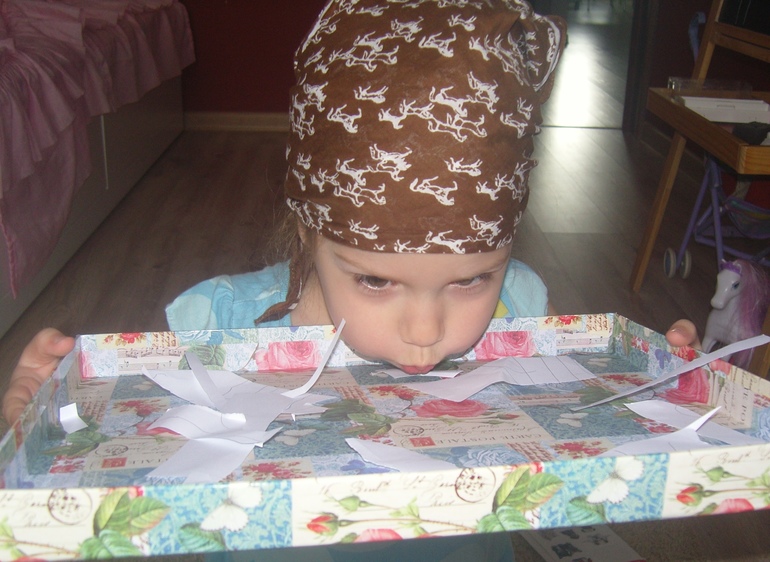 И только мы сели в корабль, начался ураган! Это понятие мы знаем (привет Волшебнику изумрудного города), но как не дать доченьке порезать)) Дала бумагу, нарезала она кораблей и сдувала их!