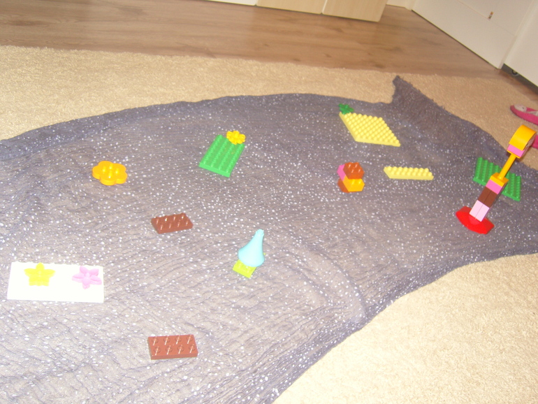 Затем традиционно обвели место дислокации на карте. И принялись разглядывать что-же пираты нам оставили. А оставили они карту (дочка прочитала что это карта сокровищ):