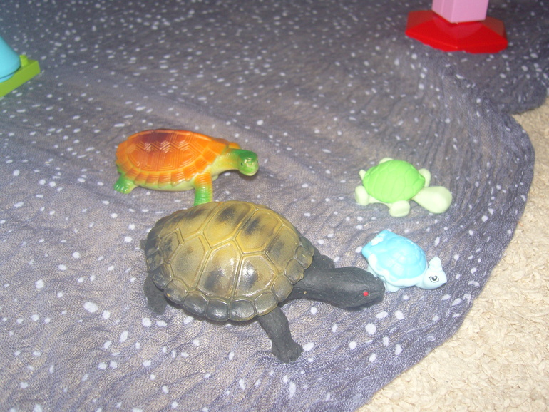 После работы мозга мы порассматривали картинки по истории мореплавания (в ожидании улиток с кораблем;) и наконец-то приплыли на Тортугу!!! НО! путь нам преградила стая семейка черепах: