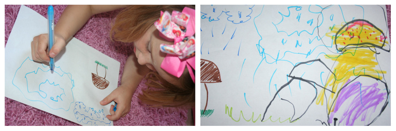 Изначально мне очень хотелось провести эту игру с Камиком на свежем воздухе, но обстоятельства сложились так, что и в этот раз мы болтали-рассуждали-выдумывали все дома. Поэтому не обошлось и без стандартного набора карточек, правда, чтобы угадать сказку Камику понадобилась только одна картинка - гриб :-) Но играть в "Под грибом" она не торопилась и стала загадывать мне свои сказки: "Почему муравьи в одиночку не ходят", "Умелые руки" и др. А я загадывала персонажей: зайца, муравья, медведя, и мы вспоминали сказки с их участием. Играли как обычно только в "Да-Нет", ну, и немного баловались :-)