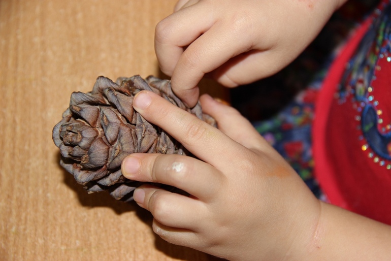 Пощупали, разобрали. Марианна вспомнила наше занятие по Хлебу и начала добывать зернышки)