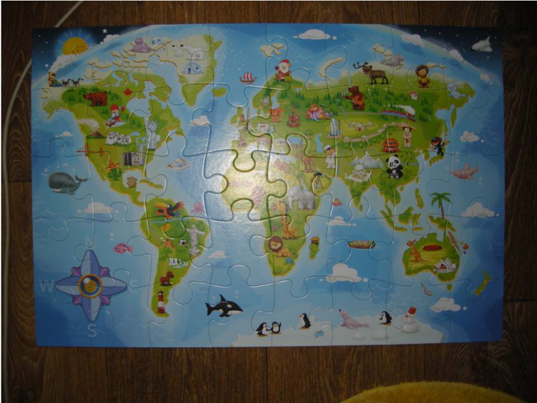 И поговорили, что среди воды есть материки и Вика разложила материки.