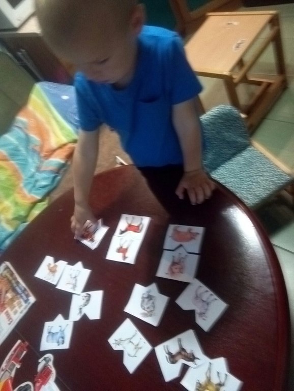 Максим делал с удовольствием поделку овечки и усы кошечки-собачке. Все остальные задания без особого интереса. От себя добавили игры с плакатом "Домашние животные". Для меня было бы лучше, если задания высылались и отчитываться можно было в воскресенье вечером.