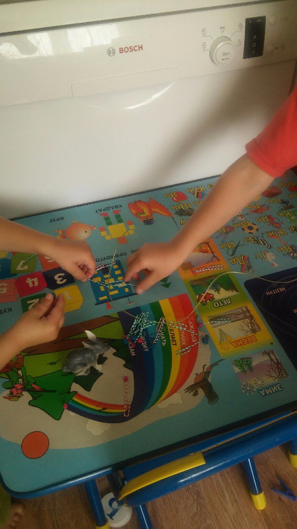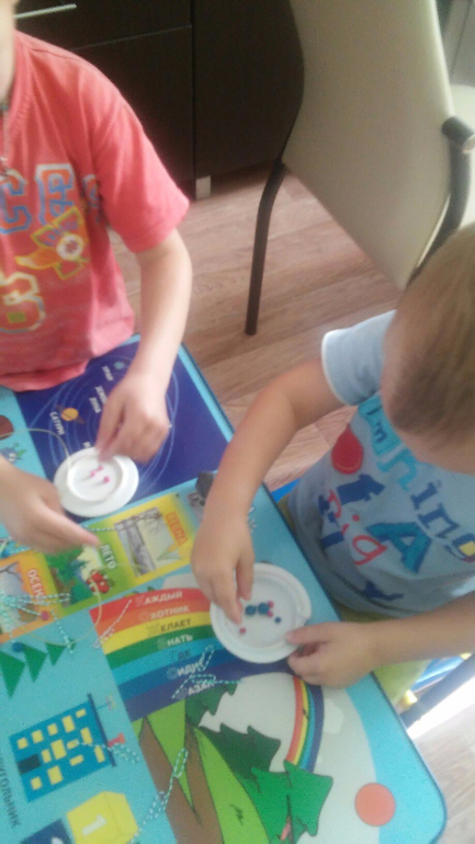 Поиграли. Зайцу насобирали ягод. Затем разложили их на съедобные и несъедобные. Съедобные только на зеленых скрепках-кустиках