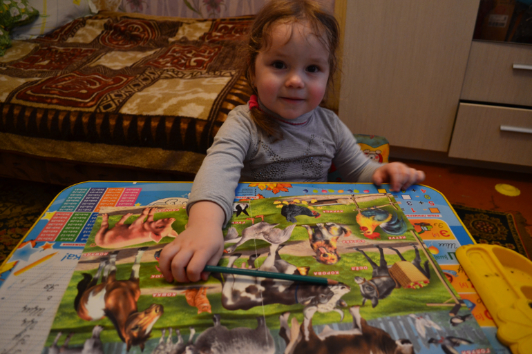 Обсудили кто где живет, почему домашние животные так называются, кто как разговаривает. Затем пособирали пазл и к нему подбирали пап. Повторили названия членов семьи и выучили незнакомые.