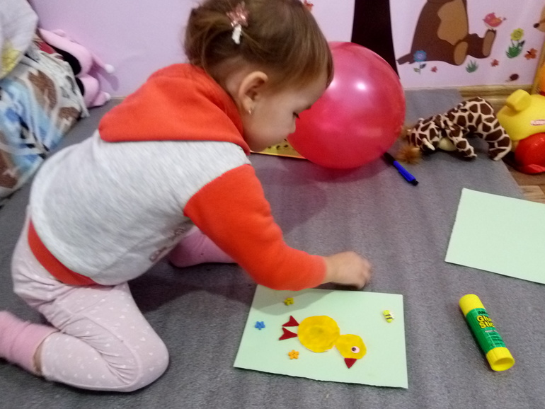 В течении дня слушали песенки про куриц и петухов, смотрели пару мультиков, рассказывали стишки.