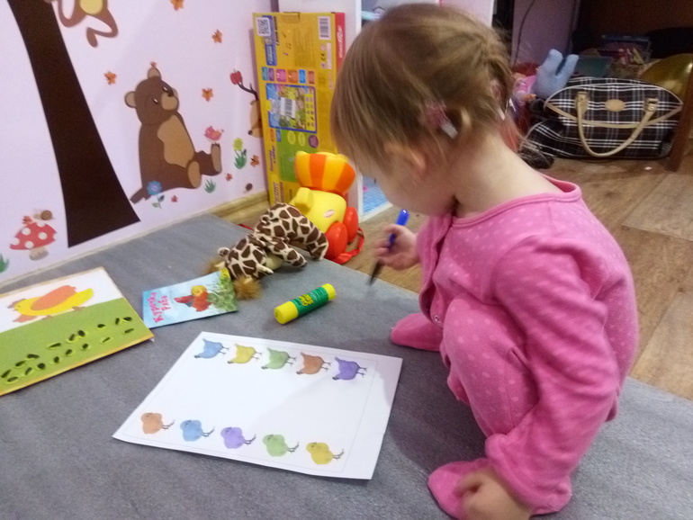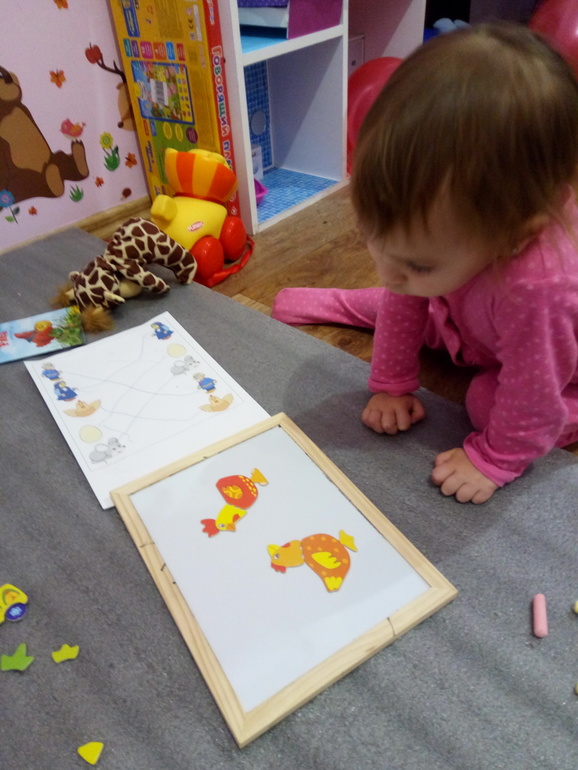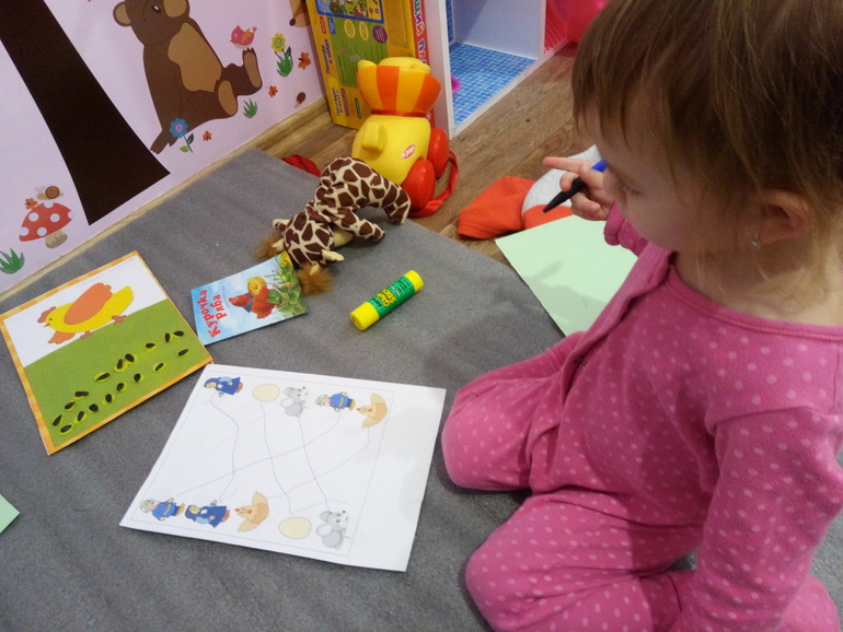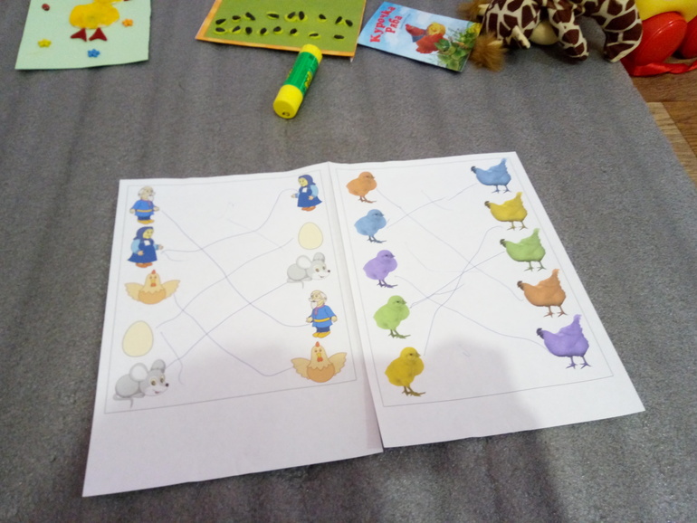 Рисовали дорожки к парам. С определением пар у дочки проблем не возникло, а вот рисовала дорожки с моей помощью