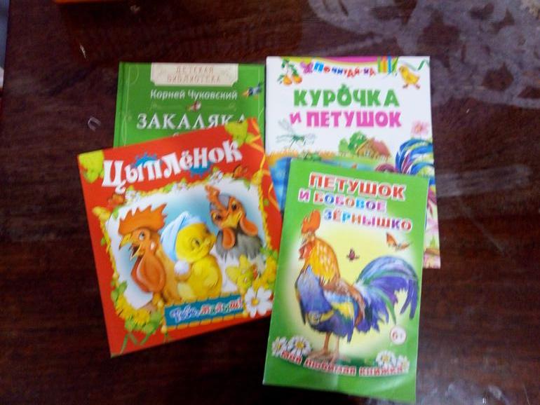 Перед сном почитали книжки на "куриную" тематики (из сборника Чуковского стих про курицу-красавицу)