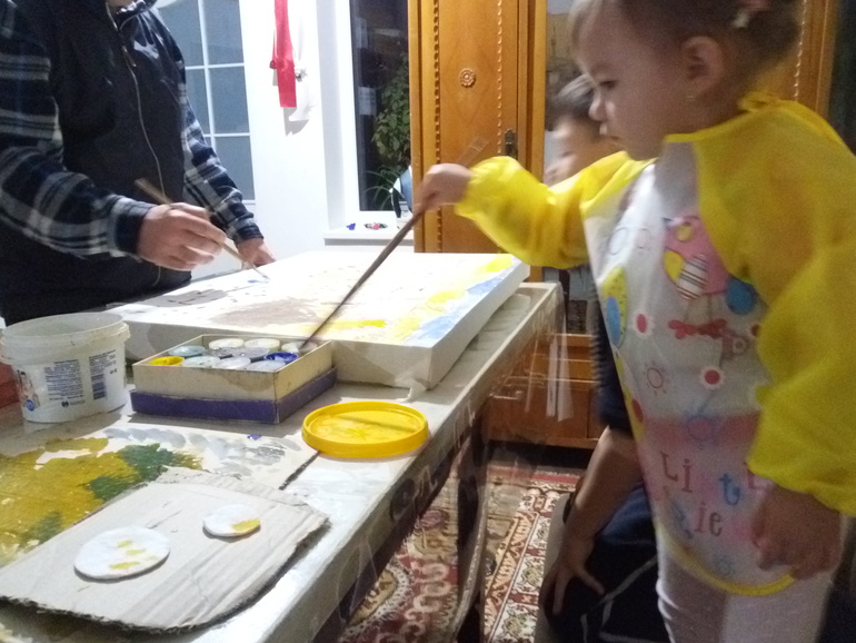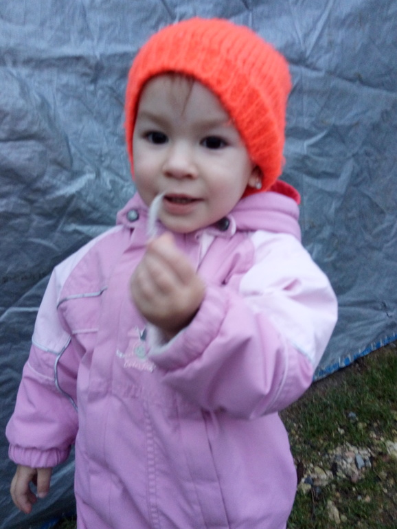 Немного поиграли активно: изображали вдвоём курочек, петухов и цыплят - как они кричат, ходят, машут крыльями, клюют зернышки. Дочка хохотала на всю улицу)