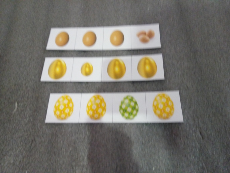 Искали лишнюю картинку в ряду. Пока это задание делаю скорее я. Дочка не может понять смысл фразы "не такое как остальные... другое... не похожее". Хотя слово " одинаковые" прекрасно понимает. Она правильно характеризует каждую картинку, но при вопросе что отличается показывает наугад