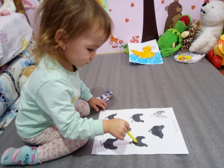 Искали тень курицы (дочка справилась за секунду и решила курицу тоже покрасить)