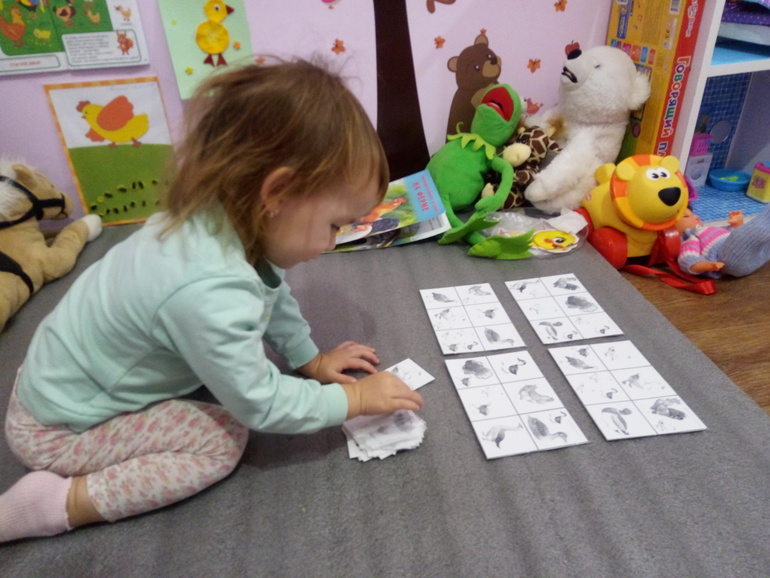 Начали играть в лото, но дочка сильно отвлекалась и игру я убрала