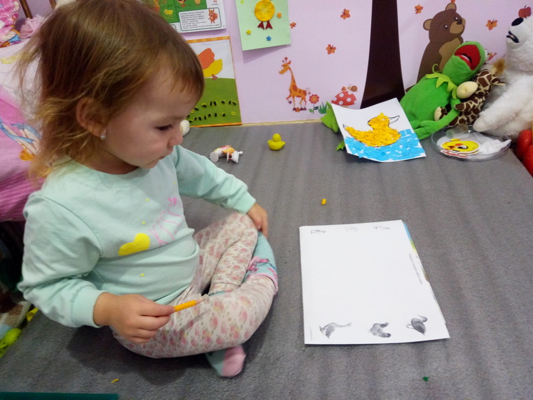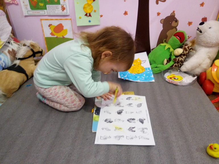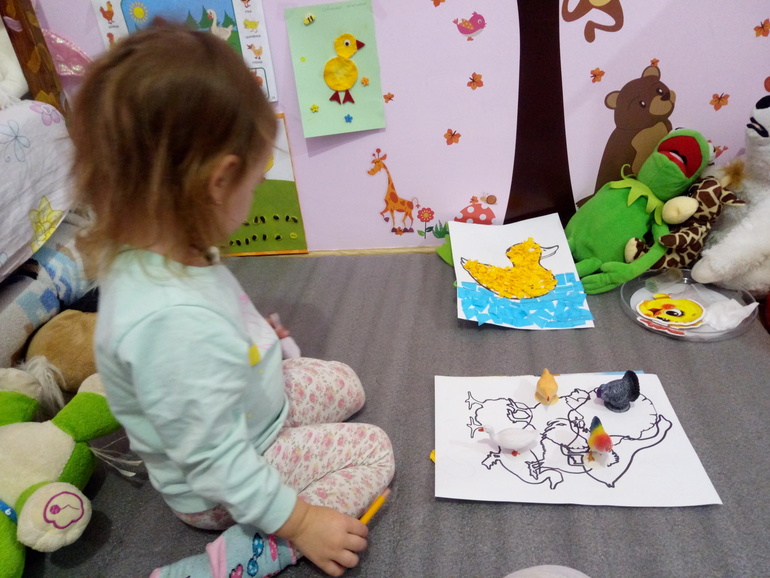 И напоследок она выпросила картинку с утятами, которая предназначалась для другого задания и старательно красила их
