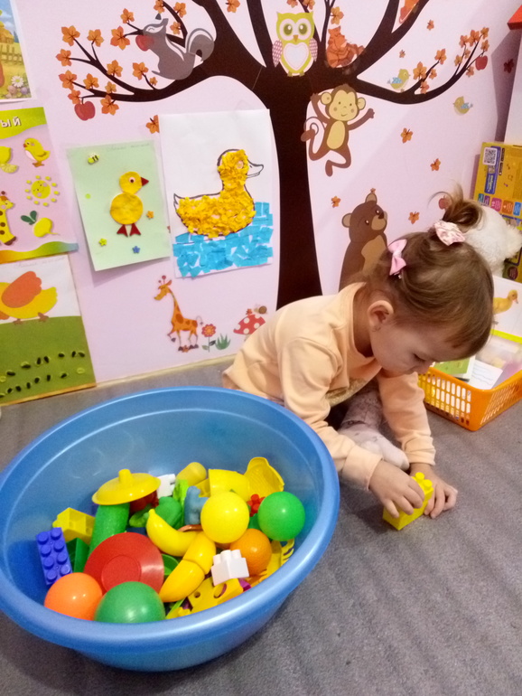 Я не предусмотрительно положила туда детальки от конструктора, поэтому сначала дочка достала их и начала строить)