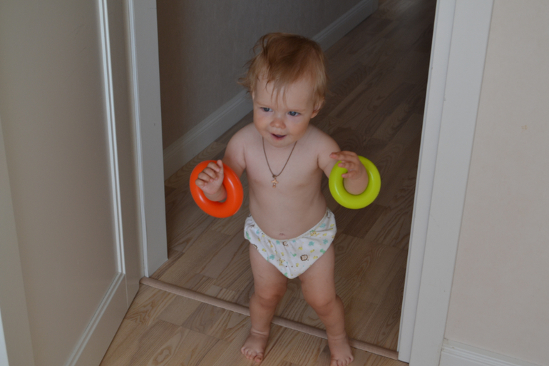 забавно когда по несколько колец на руку одевает или когда пытается самое маленькое от пирамидки одеть, а оно не налазит
