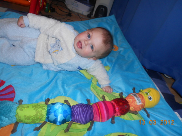 У нас есть такая гусеничка, очень классная, в ней, и гремелки, и звенелки, и шуршалки, и мелодия)) А в магазинах она больше 1000 стоит