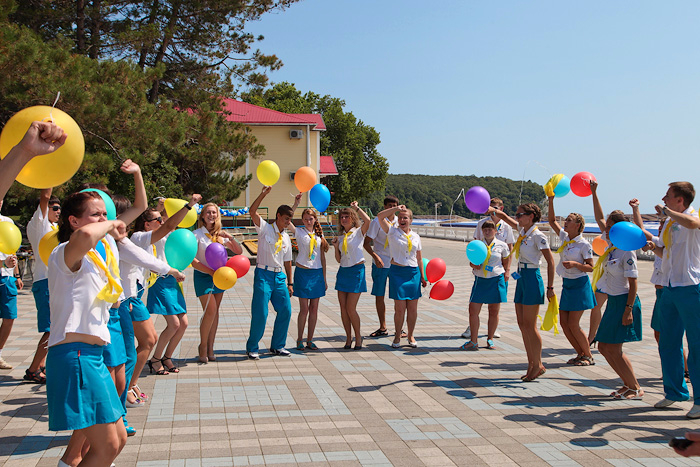 В лагере проходит Международная смена «Мир без границ». На нее приехали подростковые вожатские отряды и активные ребята, которым интересно побывать в "Орленке".