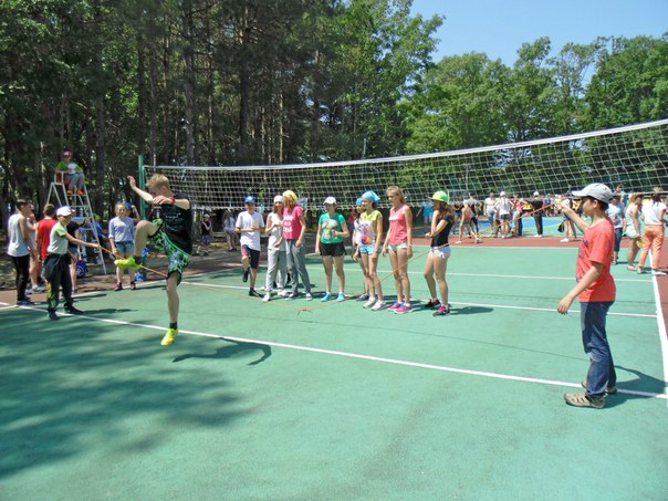 В голубой бандане около сетки Анна готовится играть в волейбол, правил которого даже не знает...