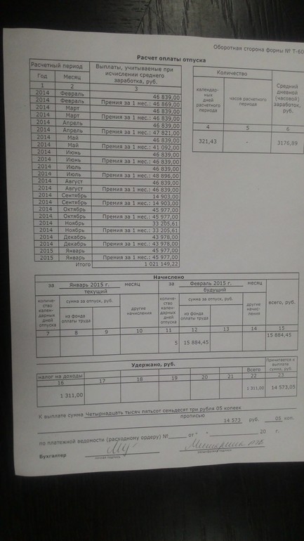 Срочно подскажите)))????Почему мужу так мало начислили отпускных Непрерывный стаж больше 15 лет, з/п 40т.р.+премия 40т.р. больше 3 лет. Больничных не было. Отпуск брал в сентябре. Мне на работе давали отпускные равносильные з/п, почему ему нет? Фото прилагаю.