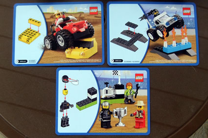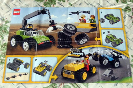 Судя по фото в наборе мало деталей, легко собирается. Кажется, что он из серии "Дупло". В стандартных наборах на одну машину 60-80 деталей, без инструкции не соберешь))