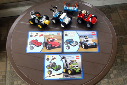 Несколько дней Темка собирал-разбирал машинки. Сначала сделал по очереди все что с инструкцией, потом те что просто нарисованы, а потом и своих напридумывал.