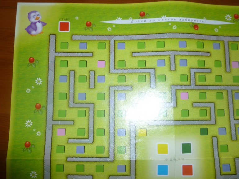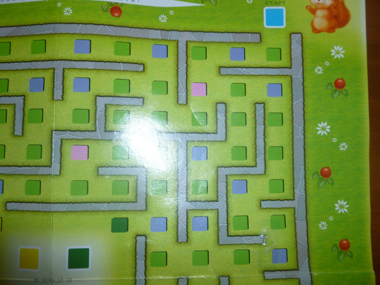 Уже концепция игры одноразовая - ребенок сразу запомнил бы дорогу. Но все еще хуже: минимальная дорожка у красных (и желтых - 12 квадратов, минимальная дорожка у синих и зеленых - по 18 квадратов. Кто выиграет?