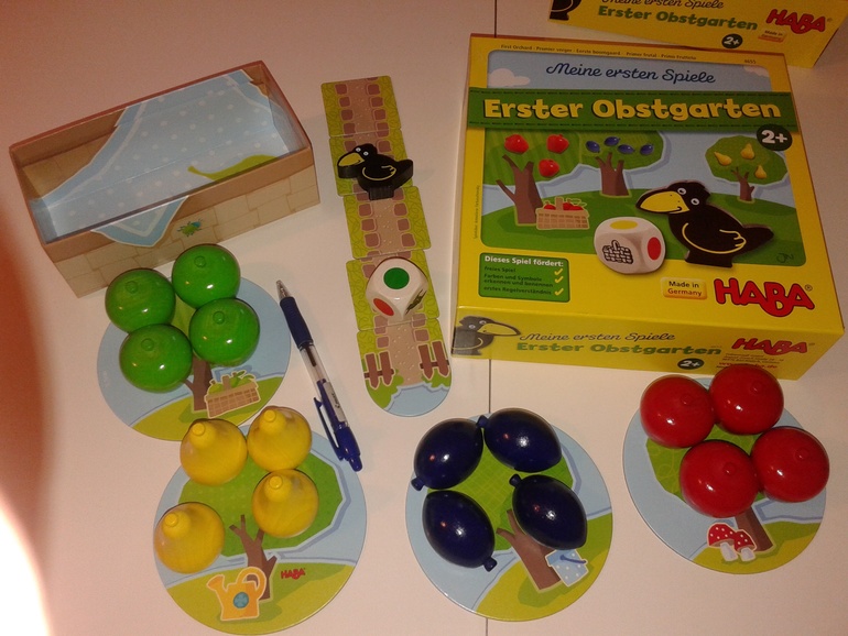 Я купила малышовую версию 2+ и ооочень ей довольна. По правилам мы пока в нее не играем, но очень любим строить дорогу для ворона, кидать кубик, раскладывать фрукты по деревьям и очень надежно их охранять) сын просто балдеет разглядывать засаженный сад, поправлять фрукты на деревьях и не допускать все вторжения взрослых в свои владения. Сами фрукты просто потрясающие - сделаны из дерева, окрашены в очень приятные глазу цвета. Они не крупные, но в тоже время, когда до них доберется младший, я спокойна, что он их не съест. Мы с удовольствием их считаем: один-один-один-один)) и пока все не пересчитаем, пока не налюбуемся в коробку не убираем.