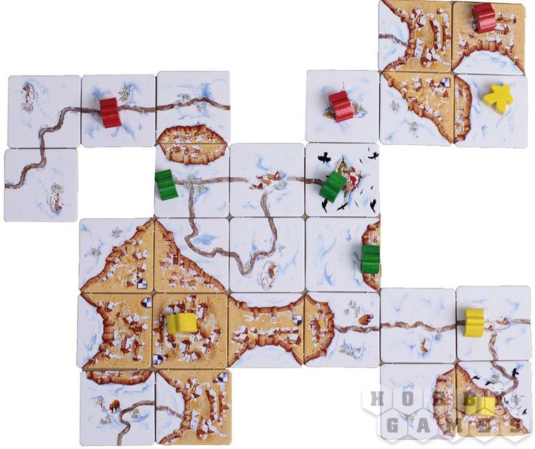 В чем отличие "Каркассон. Зимний праздник"? Прежде всего в волшебном праздничном оформлении, посвежевшем от снега и холода! Все тайлы и поле подсчёта очков перерисованы и на них появилось множество деталей, хотя сами правила не менялись, и если вы уже знакомы с игрой, то сразу освоитесь и с этим изданием. В комплект входит 72 базовых тайла, 12 дополнительных, а также 6 тайлов и фишка из дополнения «Пряничный человечек».