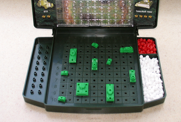 Конечно, моя задумка, ликвидировать игрой сразу мужа и сыновей и засесть за интернет, была провалена. Так как муж ушёл работать, а я стала осваивать с сыном игру. Так как цена бюджетная, производство наше, то и супер-пупер качества ожидать не стоит. В начале я с трудом вставляла танки и фишки в игровое поле, так как дырочки были, как бы поточнее выразится, не совсем идеальными. Но после нескольких игр они всё-таки округлились и приняли нужную форму. Сейчас таких проблем нет. Что порадовало, так это то, что не было неприятного запаха. Для меня это важно. Ну и главное, что игра понравилась сыну и мы теперь играем в неё каждый день. Правда в начале он подсматривал у меня расположение танков, а потом сообразил как и что, и где отмечать, и теперь играем по-честному.