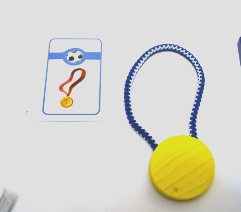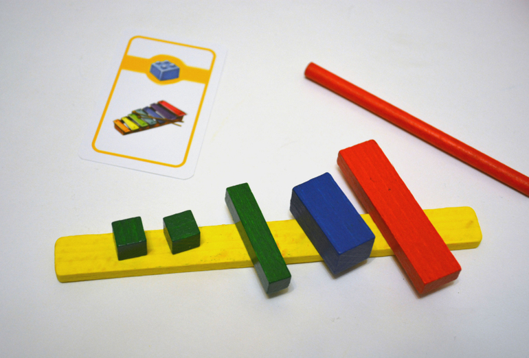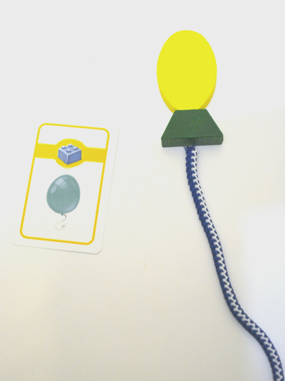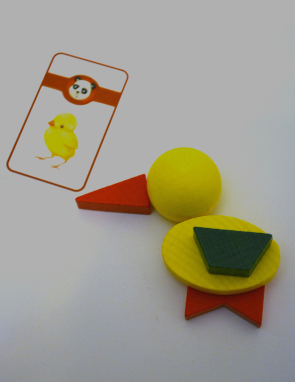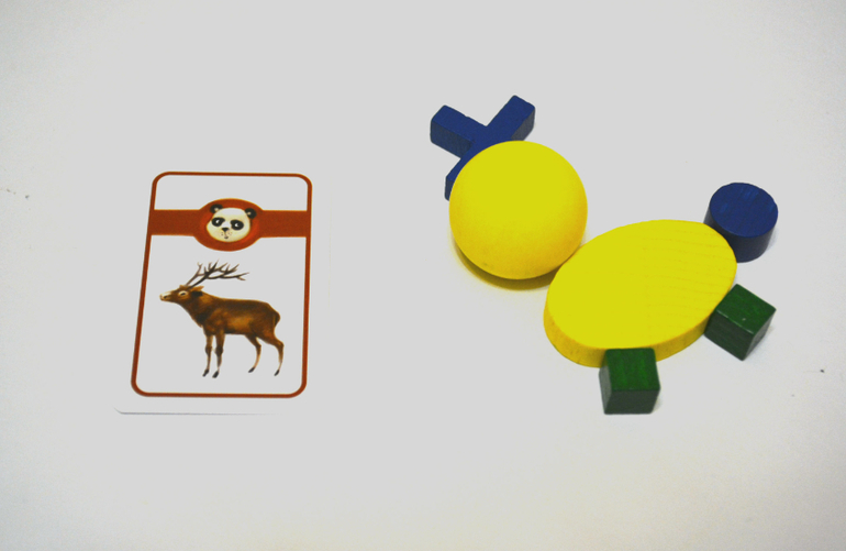 Самый младший игрок начинает игру, взяв верхнюю карточку из стопки. Он смотрит на карту и, не показывая ее никому, сообщает игрокам, к какой из шести категорий относится изображение на карте (животные, игрушки и т.д.). Затем он пытается создать изображение с помощью предложенных деревянных элементов и шнурка. Но никаких подсказок он не должен говорить