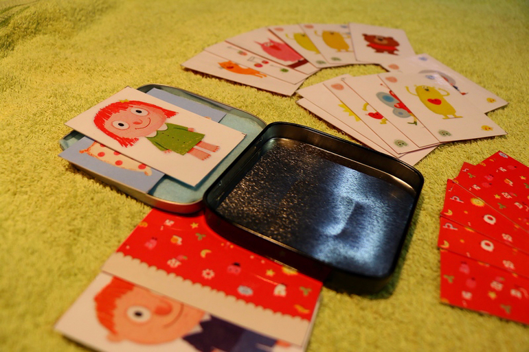 Да, коробочка у нас прям походная получилась. С засыпанием у нас особых проблем нет, но так как игра проходит у нас очень весело, она еще больше бодрит — так мне кажется. Правила у нас теперь такие — Злата сначала подушку и одеяло из колоды вытащит, ребеночка уложит (девочка у нее в роли мамы), все, а теперь играть можно, солнышко у нас обнимашки (у кого-то подсмотрела).Злате нравится, но думаю нам надо было раньше, но это зависит от ребенка.