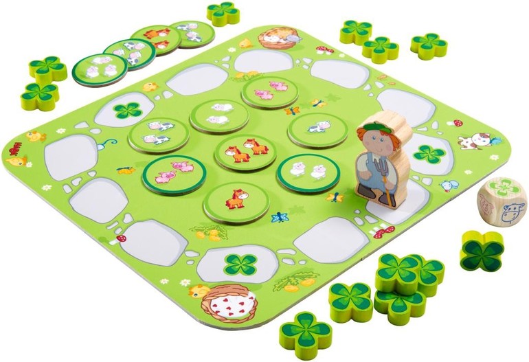 Если на кубике выпало изображение клевера - возьми фишку-клевер и покорми одно из животных на поле (просто прикоснуться листиком к мордочке животного). После этого положи клевер обратно в коробку, а фишку-животное переверни на другую сторону. Фермер Тим при этом остается на месте.