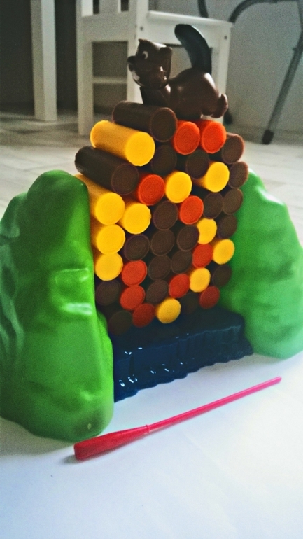 Там по идее надо вытащить 2 желтых, 2 оранжевых 2 коричневых. Если тянешь и бобер падает. Возвращаешь назад. Кто первый достал всех, тот и победил