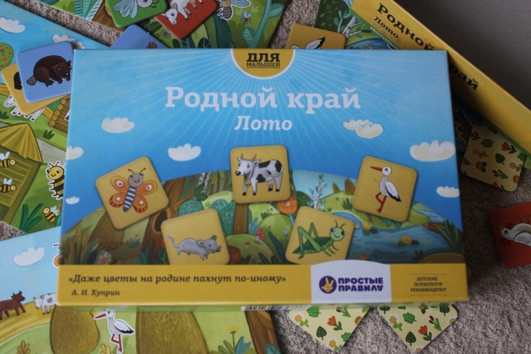 Лото Родной край создано для самых маленьких компанией Простые правила. И игровые поля, и жетоны выполнены из очень плотного картона, что позволяет сохранить лото в целости в удобной коробке на долгие годы.