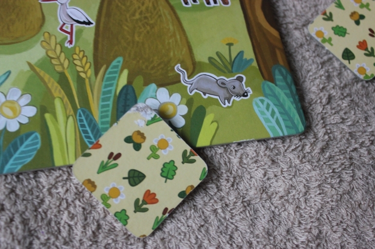 Игра состоит из четырех игровых полей на каждом из которых живет по шесть обитателей нашей полосы. На игровых карточках нам встречаются животные в следующих ситуациях - в лесу, на пруду, на ферме и в поле.