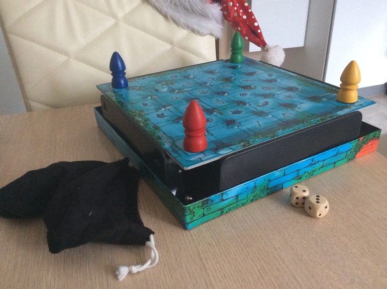Долго Дед Мороз думал дарить ли мальчику Мише на Новый Год эту игру, но, видимо, звезды сошлись). Мальчик, правда, оценил не сразу, ибо под елкой еще лежало вожделенное Лего Ниндзяго. Но третьего января после неоднократных призывов к совести игра была распакована. И понеслась). Впечатление произвела сразу - чего только стоило придумать названия ко всем 24 артефактам (я до сих пор не все запомнила). И магнитики, милые сердцу каждого мальчишки, и яркие деревянные фигурки волшебников, и загадочный черный ящик мешочек, откуда достаются артефакты.... А также возможность самому выстроить Лабиринт и попытаться запомнить расположение стенок. Все в ней прекрасно.