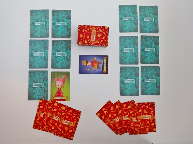 По традиции для дочки упростили правила - она может открывать свои карточки не по одной, а все сразу и идти туда, куда ей ближе. Но все чаще она играет "по взрослому" - открывает по одной или по две, иногда выигрывает. При игре вдвоем мы раздаем не все карточки, а только 7-8, чтобы сделать партию для моей непоседы чуть короче. Ксюша всегда выбирает жёлтую фишку ))).