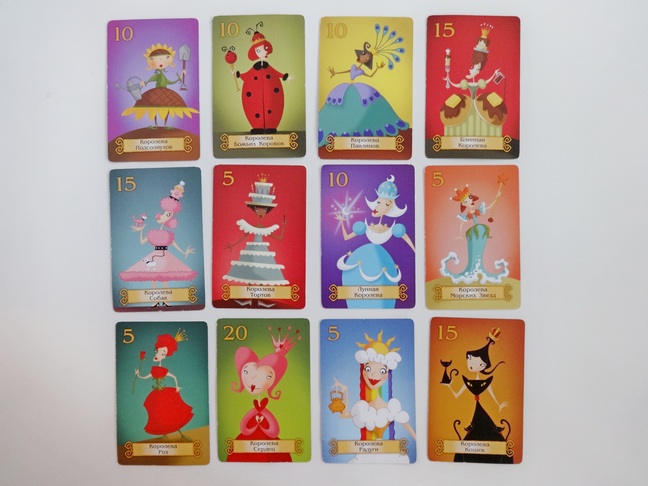Надо отметить, что мы немного изменили правила под себя. Во-первых, Ксюша еще не умеет складывать даже в пределах десяти, поэтому, когда мы сбрасываем карты, мы не составляем равенства, а просто сбрасываем одну или две (три) одинаковые карты (думаю, скоро потихоньку начнем учиться складывать как раз на примере этой игры). Во-вторых, дочка предложила играть не до тех пор, пока кто-то соберет 4-5 королев, а пока все королевы не будут разбужены. Таким образом, мы будим всех королев, а потом считаем, у кого их больше. Если поровну - тогда считаем очки.