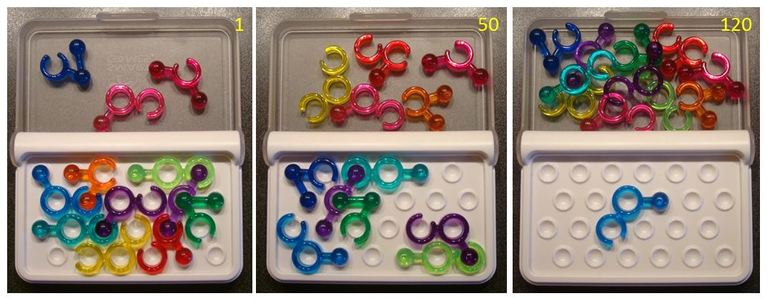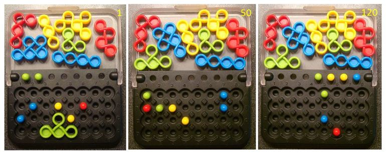 - Компактность. С одной стороны это - небольшой, но комфортный для игры размер. С другой - удобство хранения, переноски, игры в походных условиях. Каждая головоломка снабжена крышечкой, которая вместе с полем образует плотно закрывающуюся коробочку, в которой располагаются все элементы игры и буклет с правилами. Крышки закреплены на поле, что точно не позволит им потеряться. Еще эти крышки очень удобны в процессе игры - в них лежат пока незадействованные элементы.